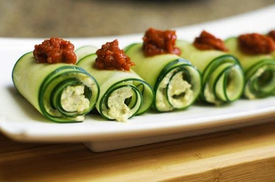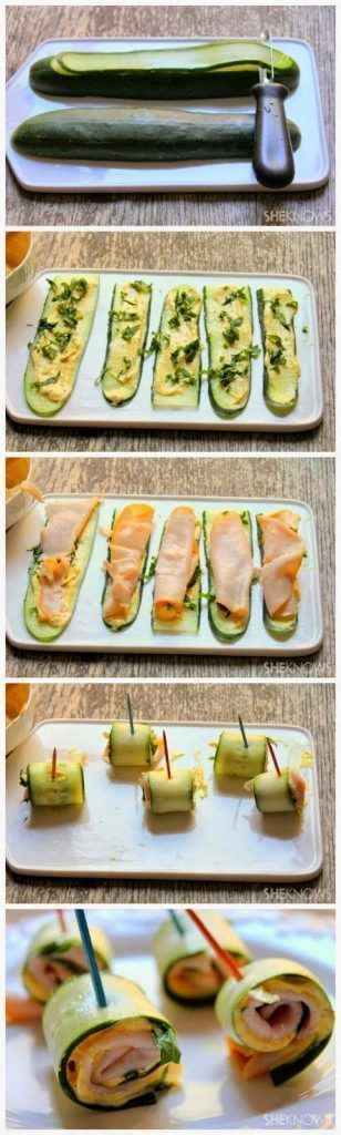 Υλικά: αγγούρια 1-1 / 2 φλιτζάνια χαμηλής περιεκτικότητας σε λιπαρά γιαούρτι 1 κουταλιά της σούπας σκόνη κάρυ 1 κουταλιά της σούπας χυμό λάιμ αλατοπίπερο 1 κουταλιά από μιξ μυρωδικών (δυόσμο,μαϊντανό, κρεμμυδάκι φρέσκο) ζαμπόν ή γαλοπούλα