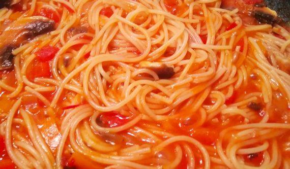 Οι μακαρονάδες αρέσουν σε μικρούς και μεγάλους. Κυρίως όμως αρέσουν σε μαγείρισσες και μάγειρες αφού είναι εύκολο πιάτο και συνδυάζεται με όλες τις σάλτσες και με τα περισσότερα υλικά του ψυγείου σας. Σήμερα θα δούμε πως μπορούμε να φτιάξουμε μία λαχταριστή κοκκινιστή μακαρονάδα με μανιτάρια και πιπεριές