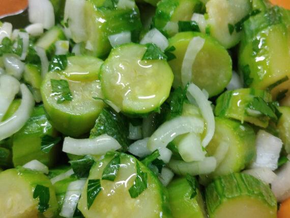 Δείτε παρακάτω την εκτέλεση για τα κολοκυθάκια σαλάτα: