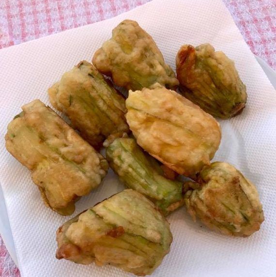 Κολοκυθοανθόι γεμιστοί με φέτα ? Υλικά •15 κολοκυθοανθούς •200 γρ. φέτα •πιπέρι Για το κουρκούτι •Μπύρα •αλεύρι Εκτέλεση Πρώτα να σας πω οτι οι κολοκυθοανθοί που γεμίζουμε δεν είναι αυτοί που είναι πάνω στο κολοκύθι, είναι λουλούδια με μίσχο που φυτρώνουν ανάμεσα στα κολοκύθια. Επειδή όμως δεν είναι εύκολο να τα βρούμε χρησιμοποιούμε τα λουλουδάκια που είναι πάνω στα κολοκυθάκια. Παίρνουμε λοιπόν τα λουλούδια και τα βάζουμε στο παγωμένο νερό μέχρι να τα χρησιμοποιήσουμε γιατί αλλιώς κλείνουν και μαραίνονται. Λιώνουμε με το πιρούνι τη φετα ρίχνουμε πιπερι και τα ανακατεύουμε. Παίρνουμε τα λουλουδάκια ένα ένα και με πολύ προσοχή τους αφαιρούμε από το εσωτερικό τους το κοτσανάκι ή αλλιώς ύπερο. (Μιλάμε για γνώσεις….δεν παίζουμε) Με ένα κουταλάκι πολύ προσεχτικά γεμίζουμε τα λουλουδάκια με το τυράκι κατά τα 2/3 και στρίβουμε το υπόλοιπο λουλουδάκι για να κλείσει μέσα του η γέμιση! Επαναλάμβάνουμε μέχρι να γεμίσουμε όλα τα λουλουδάκια. Σε μπολάκι βάζουμε μια κούπα αλεύρι και ρίχνουμε λίγη λίγη την μπύρα μέχρι να φτιάξουμε ένα χυλό αρκετά σφιχτό που θα κολλάει πάνω στους ανθούς. Αλάτι δεν βάζουμε γιατί η φέτα είναι από μόνη της αλμυρή. Σε κατσαρολάκι βάζουμε μπόλικο λάδι και μόλις κάψει πιάνουμε τους ανθούς από την κορυφή, εκεί που τους στρίψαμε και τους βουτάμε μέσα στο χυλό και κρατώντας πάντα από το άνοιγμα για να μην μας χυθεί η γέμιση τους ρίχνουμε στο καυτό λάδι. Τους τηγανίζουμε μέχρι να ροδίσουν από τη μια μεριά και μετά τους γυρίζουμε από την άλλη. Αν η φωτιά είναι πολύ δυνατή την χαμηλώνουμε. Δεν βάζουμε πολλούς μαζί γιατί θέλουν χώρο για να μην κολλήσουν μεταξύ τους! Μόλις ψηθούν και ροδίσουν τους βγάζουμε σε χαρτί κουζίνας για να απορροφηθούν τα πολλά λάδια. Τρώγονται και ζεστοί και κρύοι και συνοδεύονται υποχρεωτικά από παγωμένη μπύρα!