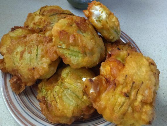 Ανθοι λοιπόν γεμιστοι με φέτα περασμένοι από κουρκούτι και τηγάνι σε μπόλικο λαδακι καλή όρεξη