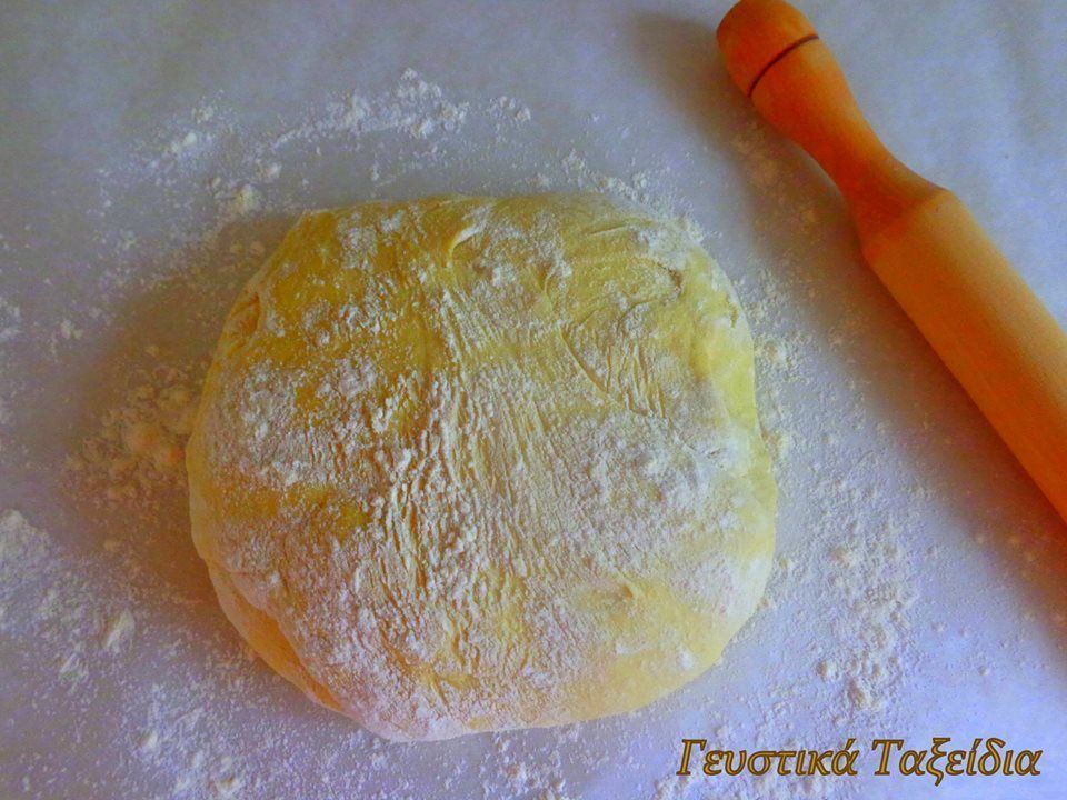 1) Bάζετε σέ μία λεκάνη τό αλεύρι μέ λίγο αλάτι, ρίχνετε τό λάδι, τό ξύδι, νερό λίγο – λίγο καί τά ζυμώνετε, μέχρι νά γίνει μία ζύμη σφιχτή. Τήν αφήνετε σκεπασμένη γιά 2 μέ 3 ώρες νά ξεκουραστεί καί τή χωρίζετε σέ 4 μπαλάκια.