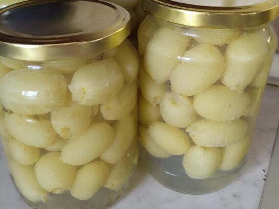 Έπειτα τα βράζουμε για 15 λεπτά μαζί με το βάζο τους. Τα βγάζουμε από την κατσαρόλα και τα σφίγγουμε καλά με μία πετσέτα και γυρνάμε τα βάζα ανάποδα.