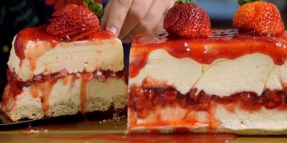 Ένα υπέροχος κορμός παγωτού cheesecake με λευκή σοκολάτα και φράουλες. Ένα λαχταριστό γλυκό όπου ο συνδυασμός της κρέμας τυριού, της λιωμένης λευκής σοκολάτας και της φράουλας κάνει ένα κλασικό επιδόρπιο φράουλας ακόμα πιο ακαταμάχητο. Μια εύκολη και γρήγορη συνταγή (από εδώ) για ένα παγωτό που θα απολαύσετε μικροί και μεγάλοι σε όλες τις περιστάσεις. Δοκιμάστε το!