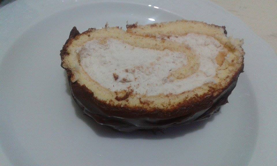 Για να φτιάξουμε το ρολό ψήνουμε το παντεσπάνι στο ταψι της κουζινας μας με λαδοκολα απο κατω.