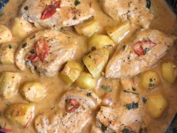 Κοτόπουλο με πατάτες και κρέμα γάλακτος έτοιμο σε 40 λεπτά.