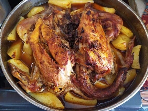 Εκτέλεση για Κοτόπουλο με πατάτες στον φούρνο ψημένο σε μπύρα