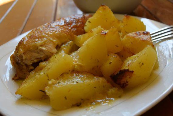Υλικά μερίδες 5 1 κοτόπουλο σε κομμάτια 2 λεμόνια το χυμό 1 πορτοκάλι το χυμό 1 κουτ γλυκού μέλι λίγη ρίγανη λίγο κουρκουμά-προαιρετικά αλάτι πιπέρι αν θέλετε 2 σκελίδες σκόρδο. ελαιόλαδο πατάτες σχεδόν 2 κιλά