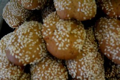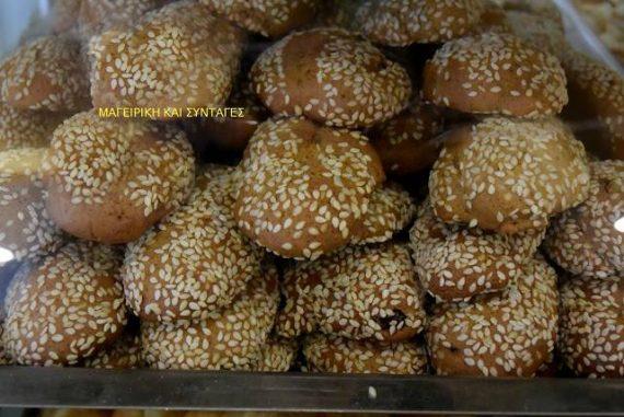 1 φλιτζάνι τσαγιού ελαιόλαδο 1+1/2 φλιτζάνι τσαγιού ζάχαρη κρυσταλλική 1 φλιτζάνι τσαγιού πορτοκάλι τον χυμό 1 κοφτό κουτάλι σούπας σόδα 1 κουτάλι φαγητού μπέικι πάουντερ 1 κοφτό κουταλάκι γλυκού κανέλα 1/2 κουταλάκι του γλυκού τριμμένο γαρύφαλλο ξύσμα από 1 λεμόνι 1/2 φλιτζάνι τσαγιού κονιάκ Αλεύρι όσο πάρει για όλες τις χρήσεις –παίρνει λίγο παραπάνω από 1 κιλό – Σουσάμι