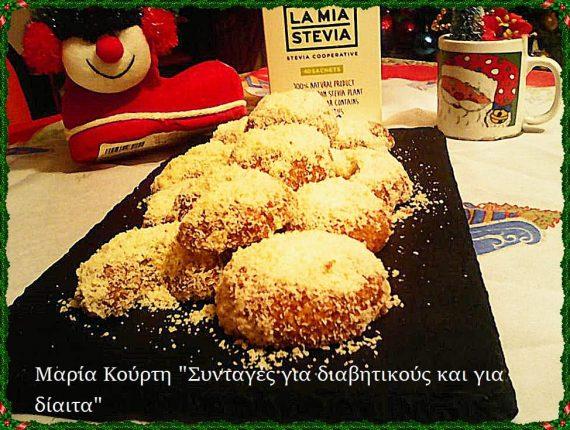 Οταν βγούν τους αφήνουμε να κρυώσουν για 1/2 ώρα.. Ετοιμάζουμε την αμυγδαλόσκονη βάζοντας στο μούλτι τα 100γρ ασπρα αμύγδαλα μαζί με το 1 κ.γλ la mia stevia εως να γίνουν σκόνη. Ψεκάζουμε τους κουραμπιέδες μας με ανθόνερο και τους πασπαλίζουμε με αμυγδαλόσκονη. Τώρα μπορούν και οι διαβητικοί να απολαύσουν το υπέροχο Χριστουγεννιάτικο γλυκάκι αλλά και όσοι μέχρι χθες τους απέφευγαν λόγω της άχνης ΚΑΛΗ ΑΠΟΛΑΥΣΗ & ΚΑΛΑ ΧΡΙΣΤΟΥΓΕΝΝΑ ΜΕ ΥΓΕΙΑ!!