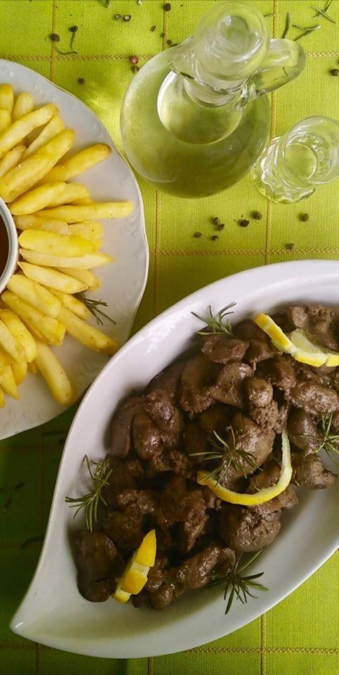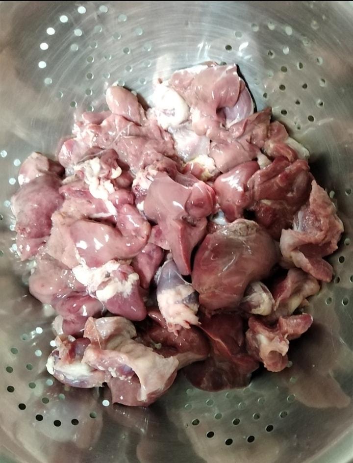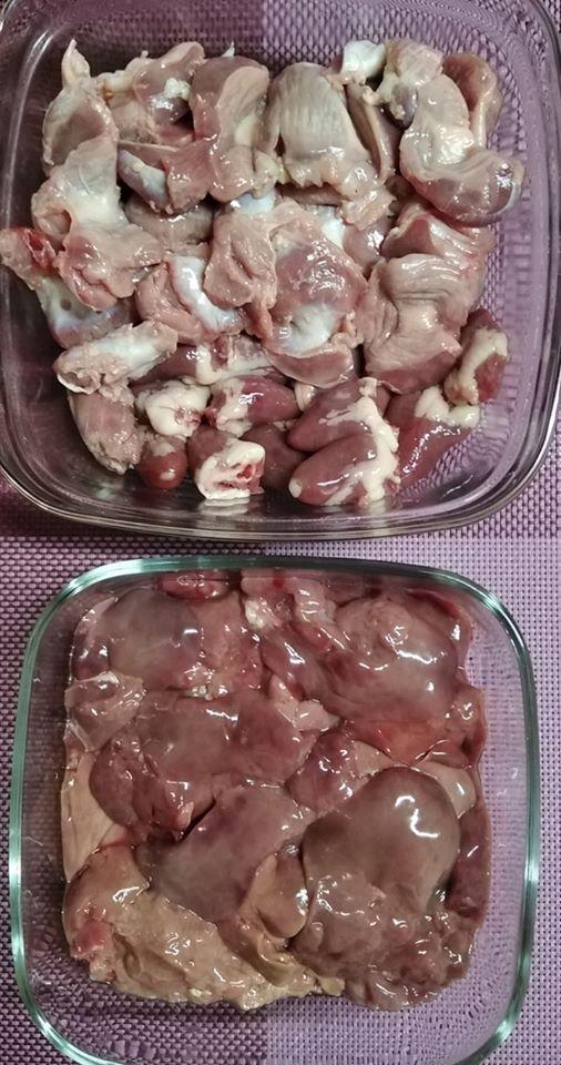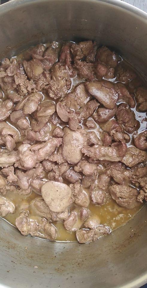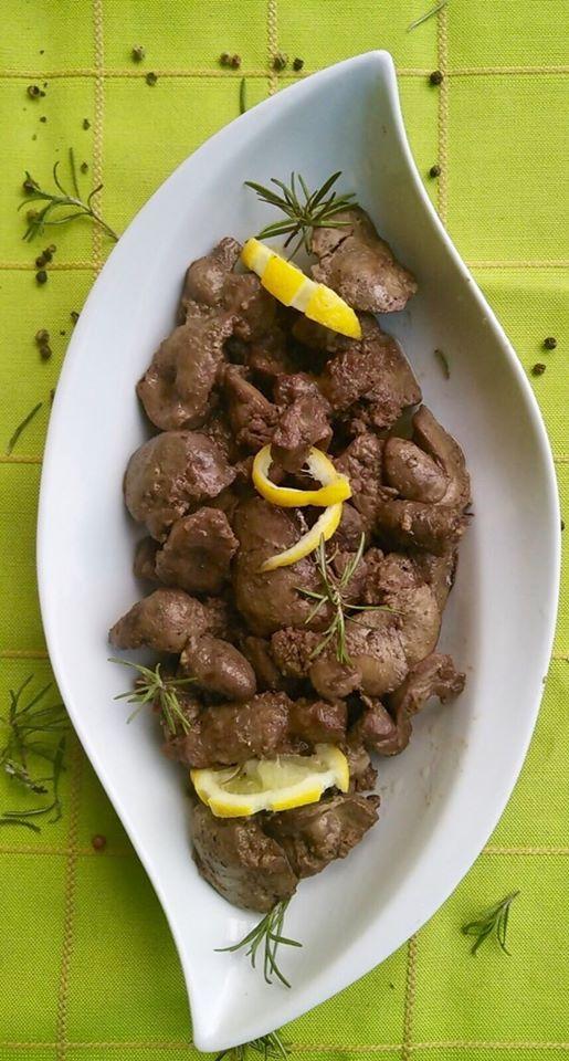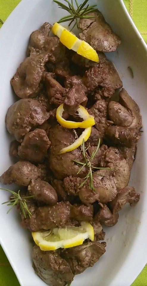 Πλένουμε και καθαρίζουμε πολύ καλά τα εντόσθια,και τα σουρώνουμε καλά. Σε μια κατσαρόλα, η βαθύ τηγάνι βάζουμε το ελαιόλαδο και σοτάρουμε πρώτα τα στομάχια από το κοτόπουλο (γιατί βράζουν δύσκολα) για περίπου 10 λεπτά. Μόλις αλλάξουν το χρώμα τους, ρίχνουμε και τα συκωτάκια με τις καρδούλες ανακατεύουμε καλά από όλες τις πλευρές, και αφήνουμε να πάρουν μια βραση για 15 λεπτά, προσθέτοντας και το νερό μαζί με το χυμό λεμονιού.