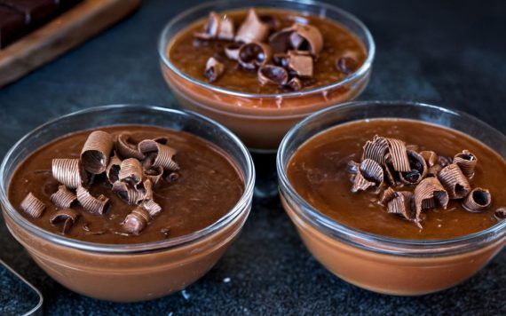 (Εάν θέλετε πιο αραιή μορφή της κρέμας μπορείτε να ρίξετε λίγο γάλα και να ανακατέψετε). Μοιράζουμε απευθείας σε μπολάκια και την αφήνουμε να κρυώσει. Γαρνίρουμε με νιφάδες κουβερτούρας Χωρίς Ζάχαρη. Καλή σας επιτυχία!