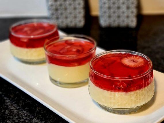 Δείτε παρακάτω την εκτέλεση για την κρέμα βανίλιας με ζελέ φράουλας: