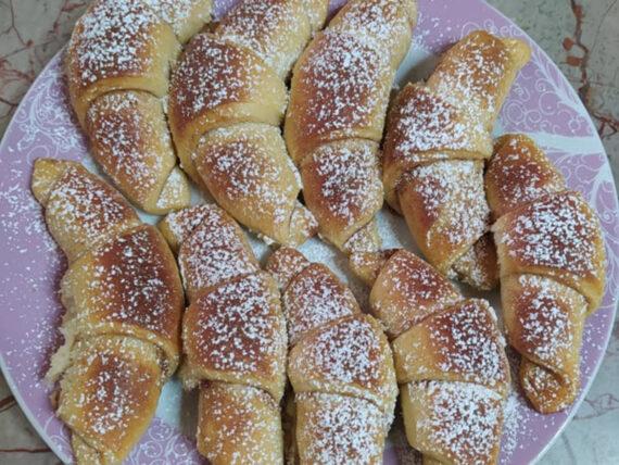 Συνταγή για κρουασάν πασπαλισμένα με ζάχαρη άχνη και κανέλα για να συνοδεύσουμε το καφεδάκι μας αλλά και για τις λιγούρες το απόγευμα,
