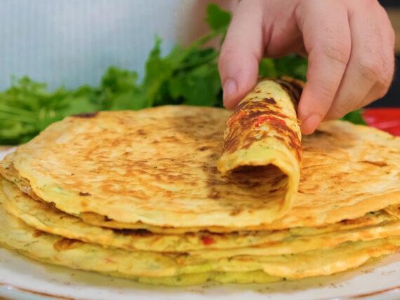 Σε ένα αντικολλητικό σε τηγάνι σε χαμηλή φωτιά προσθέτουμε ελάχιστο ελαιόλαδο και το αλείφουμε παντού με χαρτί κουζίνας. Ρίχνουμε με μια κουτάλα 2 φορές κάθε φορά από το μείγμα για την κάθε πίτα στο τηγάνι . Με μια μαρίζ στρώνουμε το μείγμα να πάει παντού ομοιόμορφα.