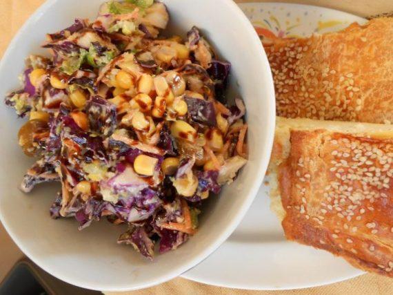 Tangy coleslaw with dressing tahini or should write very spicy; With jalapenos peppers in salad and Dijon mustard in the dressing created an explosive combination for lovers of hot situations that don’t want to deviate from the fasting days .