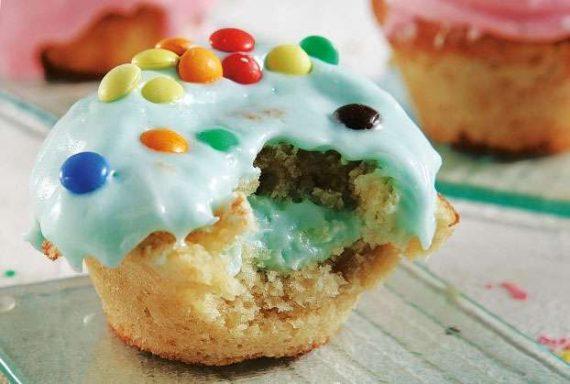 Γαρνίρετε αυτά τα λαχταριστά γεμιστά cupcakes με σπασμένες καραμέλες, με τρούφα χρωματιστή ή με πολύχρωμα κουφετάκια και προσφέρετέ τα σε ένα πάρτι γενεθλίων. Είναι απλά τέλεια!