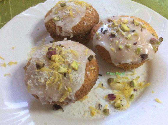Ενα μετριο λεμονι κομενο σε κοματια,εχουμε αφαιρέσει κουκουτσια και χοντρα κοματια απο το εσωτερικο του και το εχουμε λιωσει στο μπλεντερ Μια κουπα ινδικη καρυδα Μια και μιση κουπες ζαχαρη 3 αυγα Λιγο γαλα( εβαλα 3 κ σ ) 2 κουπες φαρινα 1 κ σ μπεικιν παουντερ 1 00 γρ βουτυρο,και λιγο για να αλοιψω τα φορμακια. 2 βανιλιες Μια κουπα αχνη και 3 κ σ χυμο λεμονι για το γλασο