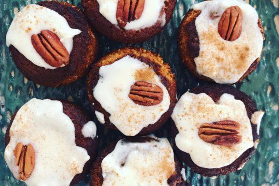 Λαχταριστά muffins με καρύδια Πεκάν. Τα παιδιά θα τα λατρέψουν γιατί έχουν καρύδια Πεκάν και μέλι και το γλάσο τους είναι φτιαγμένο με γιαούρτι, τυρί κρέμα και μέλι! Νόστιμα υλικά που αρέσουν στα παιδιά και σίγουρα πιο αγνά από τα αγοραστά.
