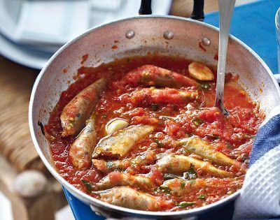 Σαρδέλες αχνιστές με κρασί, ντομάτες και λαδορίγανη