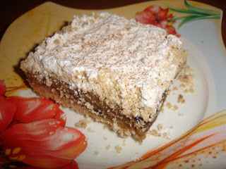 Ενώνω όλα τα υλικά της ζύμης και φτιάχνω ένα μείγμα σαν ψίχουλα. Στρώνω τα μισά σε ένα ταψί 28-30 εκατ. και κατόπιν τοποθετώ το μείγμα με όλα τα υλικά της γέμισης από πάνω. Κατόπιν τελειώνω στρώνοντας από πάνω το υπόλοιπο από το μείγμα της ζύμης. Ψήνω στους 200 βαθμούς για περίπου 1 ώρα. Όταν κρυώσει, πασπαλίστε με ζάχαρη άχνη.