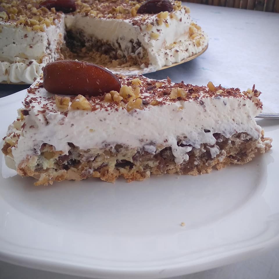 Συνταγή για τούρτα από χουρμάδες, καρύδια και σαντιγί με απλά υλικά. Μία εύκολη χουρμαδοτούρτα ιδανική για κέρασμα ή γενέθλια. Εϊναι πραγματικά πολύ απολαυστική, και θα αρέσει πολύ και στα παιδιά! Ελαφριά και δροσερή που αξίζει να τη δοκιμάσετε!