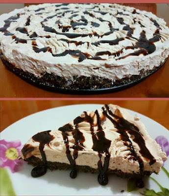 Υλικά 2 πακ. Μπισκότα γεμιστά σοκολάτας 3 κ.σ βούτυρο ( το λιώνουμε) 2 φακ. Garni 3 κ.σ Μερέντα 400 ml γάλα φρέσκο.