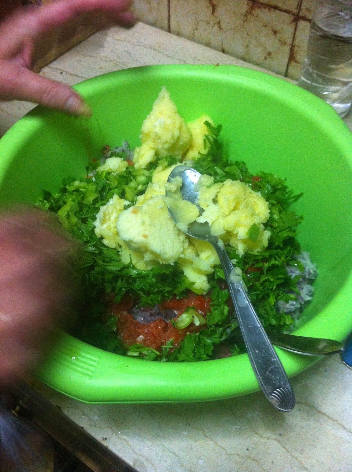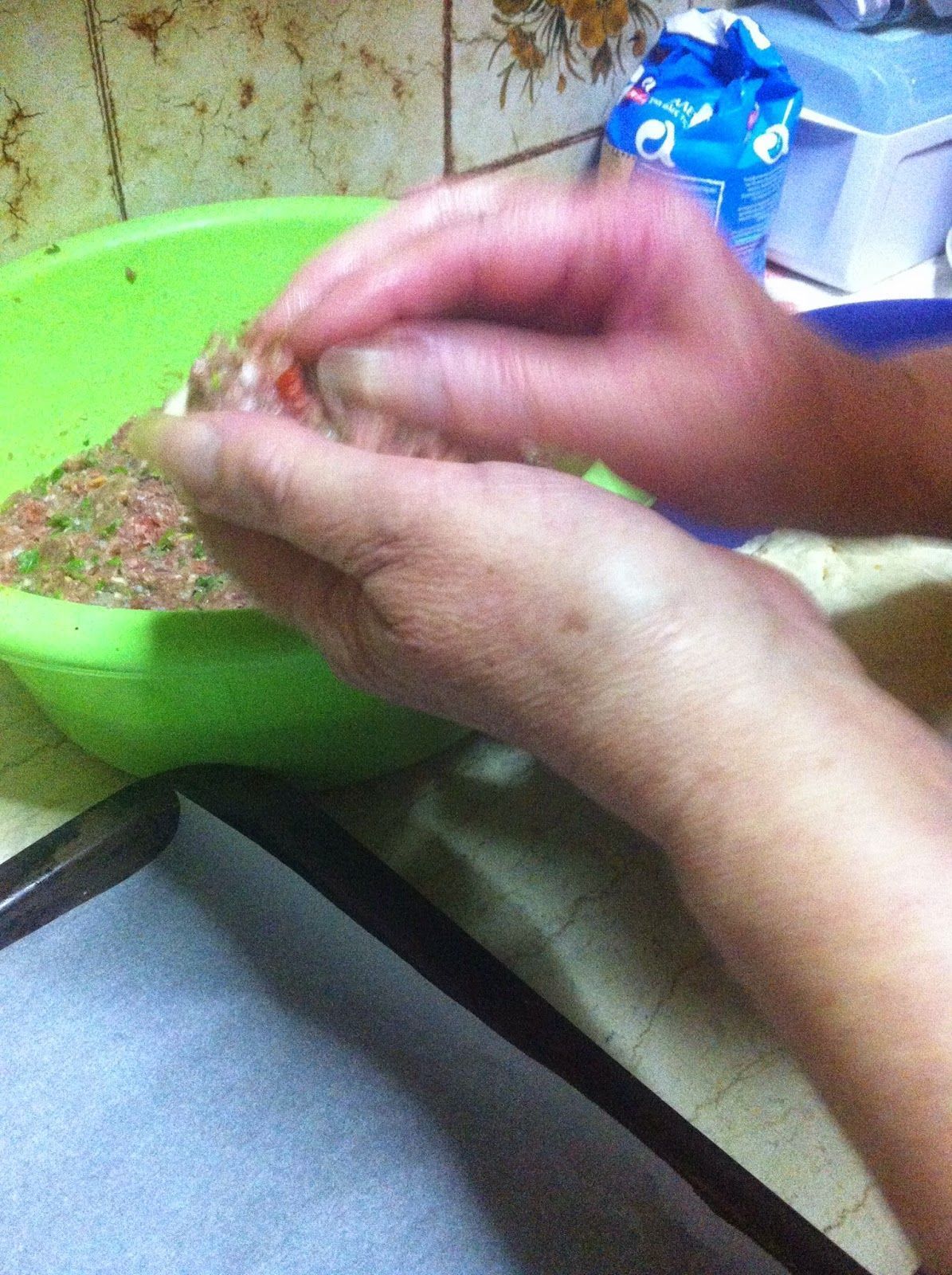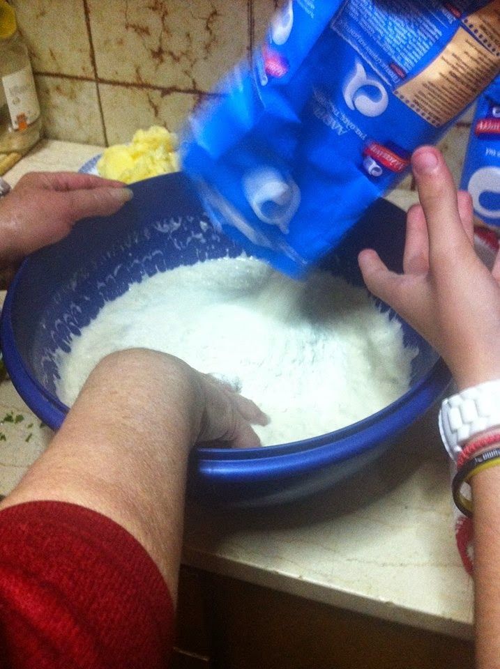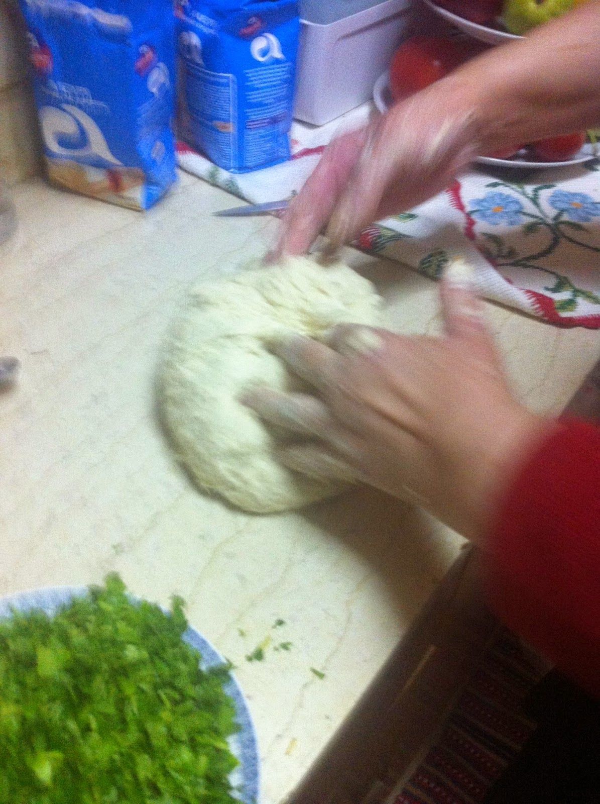 και μια κουτάλια της σούπας λάδι νερό όσο σηκώσει να βγει μια μαλακή ζύμη…..