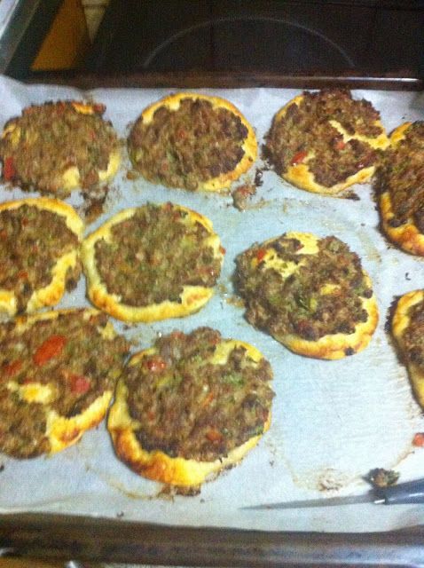 Βάζουμε όλα τα υλικά μαζί και τα ζυμώνουμε πολύ καλά.Κατόπιν ενώνουμε την ζύμη της πίτας με την ζύμη του κιμά. Περνούμε ζύμη σαν ένα μπαλάκι και την ανοίγουμε σαν ένα πιατάκι του καφέ και πιάνουμε λίγο κιμά και το απλώνουμε πάνω στην ζύμη. Τα τοποθετούμε σε λαδόκολλα στο ταψί και τα ψήνουμε σε προθερμασμενο φούρνο στους 180 βαθμούς όταν ροδίσουν είναι έτοιμα !
