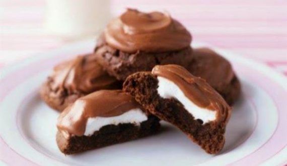 Στον κάδο του μίξερ χτυπάτε το βούτυρο με τη ζάχαρη μέχρι να αφρατέψουν και προσθέτετε το φιστικοβούτυρο. Ανακατεύετε μέχρι να δέσει καλά το μείγμα, προσθέτετε το αυγό και συνεχίζετε λίγο ακόμη. Κοσκινίζετε το αλεύρι με το μπέικιν πάουντερ και το κακάο και το προσθέτετε στο μείγμα του βουτύρου ανακατεύοντας συνεχώς. Τέλος προσθέτετε λίγο αλάτι και το κονιάκ. Συνεχίζετε το χτύπημα 1΄ μέχρι να αναμειχθούν καλά τα υλικά και να έχετε ένα λείο και σφιχτό ζυμάρι. Προθερμαίνετε το φούρνο στους 180 °C. Από το ζυμάρι φτιάχνετε μπαλίτσες περίπου 2 εκ. και τις τοποθετείτε σε μεταλλικές θήκες για μάφιν ή σε ένα ταψί όπου έχετε στρώσει αντικολλητικό χαρτί, αφήνοντας απόσταση 2 εκ. μεταξύ τους. Πιέζετε λίγο με το χέρι κάνοντας μικρά βαθουλώματα και ψήνετε 10-12΄. Αφήνετε τα μπισκότα να κρυώσουν μέσα στις θήκες. Πάνω σε κάθε μπισκότο (στο βαθούλωμα) ρίχνετε πρώτα τη λευκή σοκολάτα και, μόλις κρυώσει και σφίξει, περιχύνετε με τη λιωμένη κουβερτούρα. Αφήνετε να σφίξει και η κουβερτούρα και ξεφορμάρετε με τη βοήθεια ενός μαχαιριού. πηγη