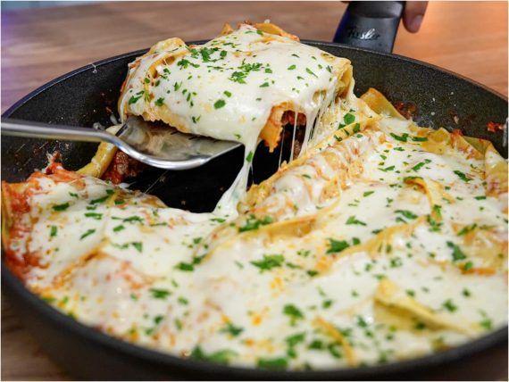 Συνταγή για εύκολα λαζάνια στο τηγάνι, χωρίς να λερώσουμε πολλά σκεύη από τον Δημήτρη Μιχαηλίδη. Με μοσχαρίσιο κιμά και τριμμένη μοτσαρέλα, αυτά τα λαζάνια είναι του ονείρου και είναι η τέλεια επιλογή για αρχάριους στη κουζίνα. Για το μεσημεριανό όλης της οικογένειας.