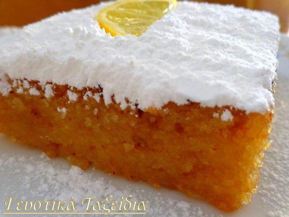 Ζουμερή, λαχταριστή, απολαυστική Λεμονόπιτα μέ Πρωταγωνιστή τό λεμόνι, νά απογειώνει τήν απόλαυση … Ό,τι πρέπει γιά νά τή σερβίρετε μέ τό απογευματινό καφεδάκι στή βεράντα ή τήν αυλή. ΓIA TH ZYMH: 1 φλυτζάνι αλεύρι 2 φλυτζάνια σιμιγδάλι .. (1 χοντρό, 1 ψιλό) .. 1 φακελάκι μπέικιν πάουντερ 2 αρωματικές βανίλιες Ξύσμα από 2 λεμόνια 2 αβγά 1 φλυτζάνι ζάχαρη κρυσταλλική 1 φλυτζάνι γιαούρτι στραγγιστό ½ φλυτζάνι αραβοσιτέλαιο ½ φλυτζάνι χυμό λεμονιού ΓΙΑ ΤΟ ΣΙΡΟΠΙ: 200 ml. χυμό λεμονιού 2 – ½ φλυτζάνια νερό 2 – ½ φλυτζάνια ζάχαρη κρυσταλλική 1 ξύλο κανέλλας … (προαιρετικά) … ΕΚΤΕΛΕΣΗ τής ΣΥΝΤΑΓΗΣ: Προθερμαίνετε τό φούρνο στούς 180ο βαθμούς. Πρώτα ετοιμάζετε τό σιρόπι βράζοντας γιά 5 λεπτά, όλα τά υλικά μαζί, μέσα σέ ένα κατσαρολάκι καί ύστερα τό αφήνετε στήν άκρη νά κρυώσει. Ανακατεύετε σέ ένα μπόλ τό αλεύρι μέ τά δύο σιμιγδάλια, τό μπέικιν πάουντερ, τίς βανίλιες καί τό ξύσμα τών λεμονιών. Μέσα σέ ξεχωριστό μπόλ αναμιγνύετε μέ σύρμα τά αβγά μέ τή ζάχαρη, τό γιαούρτι, τό λάδι καί τό χυμό τού λεμονιού. Προσθέτετε τό μείγμα μέ τά σιμιγδάλια καί ανακατεύετε μέ σπάτουλα μέχρι νά ομογενοποιηθούν τά υλικά καί νά γίνουν ένας πηχτός χυλός. Λαδώνετε ένα μέτριο ταψί καί αδειάζετε μέσα τό μείγμα τής ζύμης. Ψήνετε στόν προθερμασμένο φούρνο, στή μεσαία σχάρα γιά 45 μέ 50 λεπτά περίπου, μέχρι νά ροδοκοκκινίσει καλά ή πίτα. Αφού έχει περάσει ό αναγραφόμενος χρόνος ψησίματος, ελέγχετε μέ μαχαίρι άν ψήθηκε στό κέντρο ή λεμονόπιτα. Βγάζετε τήν λεμονόπιτα από τόν φούρνο καί μετά από 15 λεπτά περίπου, τή χαράζετε σέ κομμάτια καί τήν περιχύνετε μέ τό μισό σιρόπι, ρίχνοντάς το λίγο λίγο μέ κουτάλα. Αφού τό απορροφήσει, συνεχίζετε μέ τό υπόλοιπο σιρόπι. Αφήνετε νά κρυώσει πρίν σερβίρετε καί τήν πασπαλίζετε μέ ζάχαρη άχνη. ΚΑΛΗ ΕΠΙΤΥΧΙΑ … ! ! !