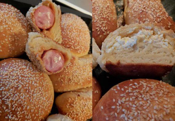 Φροντίζουμε η γέμιση να μην έχει πολλά υγρά γιατί η ζύμη μας είναι από μόνη της μαλακή και με τα υγρά θα μαλακώσει περισσότερο. Ανοίγουμε λοιπόν το κάθε μπαλάκι σε στρογγυλά ζυμαράκια και το γεμίζουμε με λίγη κέτσαπ και λουκάνικο.