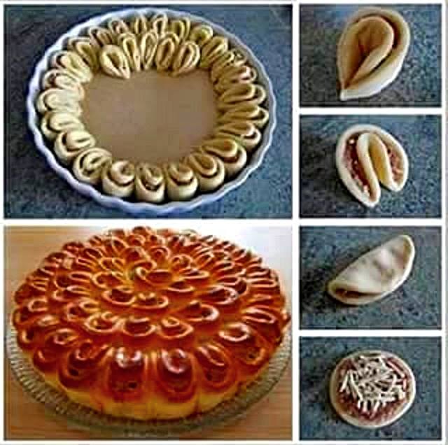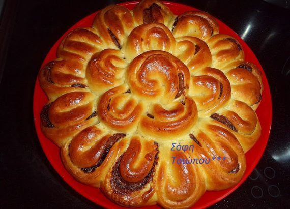 Εκτέλεση Σ’ένα μεγάλο μπολ ρίχνω όλα τα υλικά εκτός από το αλεύρι και ανακατεύω να λιώσει η ζάχαρη με τη μαγιά.Προσθέτω λίγο λίγο το αλεύρι ζυμώνοντας μέχρι να έχω μια ζύμη αφράτη που να μην κολλάει στα χέρια.Αν χρειαστεί προσθέτω λίγο αλεύρι ακόμα.Αφήνω τη ζύμη μεσα σε μια σακουλίτσα να ξεκουραστει 15 λεπτα.Ανοιγω φυλλο πάχους 1 εκ.και κοβω με ένα στρογγυλο ποτηρι διάμετρο 8-10 εκ.κυκλάκια.Τα αλλείφω με την πραλίνα και τα τοποθετώ σε ταψάκι 28-30 εκ.περιπου με λαδοκολα,το ένα δίπλα στο αλλο.Τα αφήνω να φουσκώσουν άλλα 15 λεπτά.(Δείτε το σχεδιο της φωτο)Αλείφω με εβαπορε γαλα και ψήνω στους 170 αντιστασεις 25-30 λεπτα περιπου.