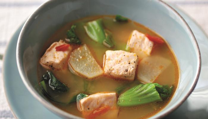 Σούπα με Σολωμό και ΠράσοΣούπα με Σολωμό