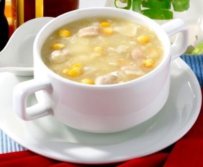 Τα υλικά 2 στήθη κοτόπουλου 1 lt. ζωμό κοτόπουλου 400 gr. καλαμπόκι 1 κρεμμύδιΚοτόσουπα 1 κουταλιά της σούπας βούτυρο Λευκό πιπέρι Αλάτι