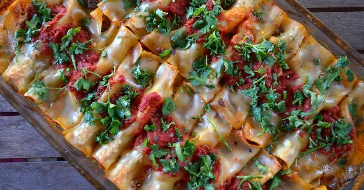 - Γεμίζουμε τα κανελόνια και τα τοποθετούμε το ένα δίπλα στο άλλο μέσα στο ταψί.