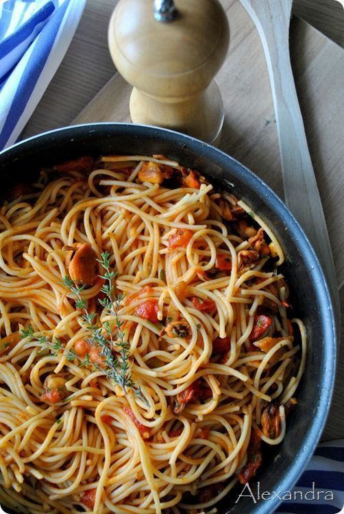 για τη σάλτσα 1 σακουλάκι μύδια πλυμένα και στραγγισμένα 1/2 κούπας λάδι 3 σκελίδες σκόρδο σε φέτες 1 κον κασέ ή φρέσκια ντομάτα ψιλοκομμένη 1 κ.σ. κέτσαπ 1 κ.σ. πελτέ 1 μικρή πιπεριά κέρατο σε ροδέλες 1 καυτερή πιπεριά σε ροδέλες(προαιρετικά) μαϊντανό ψιλοκομμένο αλάτι,πιπέρι 1 σφηνάκι λευκό κρασί
