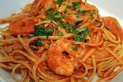 7. Αν θέλουμε τα μακαρόνια μας να απορροφήσουν όλη τη σάλτσα, βράζουμε τα μακαρόνια στο μισό χρόνο απ΄ότι τα βράζουμε συνήθως και προσθέτουμε τα μισοβρασμένα μακαρόνια στην κατσαρόλα με τις γαρίδες βάζοντας και 2 ποτήρια από το νερό που έβρασαν τα μακαρόνια και ανακατεύουμε. Αφήνουμε να σιγοβράσουν για τον υπόλοιπο μισό χρόνο βρασμού τον μακαρονιών,προσθέτοντας λίγο ακόμη νερό που έβρασαν τα μακαρόνια.