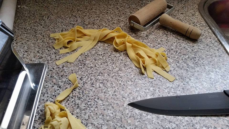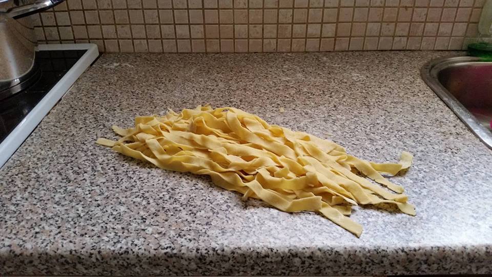 «Ό,τι μπορούμε να φτιάξουμε στο σπίτι μας είναι ό,τι πιο υγιεινό και οικονομικό»! Ταλιατέλλες, Παπαρδέλλες, ακόμα και χυλοπίτες σε λίγα λεπτά της ώρας!τη συνταγή την βρήκα στη καταπληκτική σελίδα στο facebook υπεροχα χωριάτικα φαγητά πατήστε εδώ να δείτε καταπληκτικα φαγητά Έτσι, αποφασίσαμε να φτιάξουμε τα δικά μας σπιτικά ζυμαρικά, που να ξεχωρίζουν για τη νοστιμιά και την αγνότητά τους! • Φρέσκα Ζυμαρικά (πάστα – pasta) Υλικά 2 αυγά (αναλογία 1 αυγό/100γρ σιμιγδάλι) 200γρ ψιλό σιμιγδάλι Τα ανακατεύουμε σε food processor και ζυμώνουμε πάνω στην επιφάνεια εργασίας. Εάν το μείγμα είναι πολύ σκληρό κ τρίβεται, προσθέτουμε λίγο νερό, και κατά προτίμηση αντί νερού λευκό κρασί. Εμείς χρησιμοποιήσαμε κρασί περίπου 3-4 κουταλιές σούπας (ανάλογα με την πυκνότητα). Την χωρίζουμε σε τρία κομμάτια, και απλώνουμε την κάθε ζύμη με έναν χοντρό πλάστη (αν δεν έχουμε ακόμα και με ένα μπουκάλι κρασιού!), ή αν έχουμε με την μηχανή ζυμαρικών. Την διπλώνουμε και την κόβουμε στο επιθυμητό πλάτος. Δύσκολα θα ξαναγοράσετε έτοιμα ζυμαρικά!!!… 😉 Βράζονται σε 2′ σε μπόλικο βραστό νερό με θαλασσινό αλάτι (Αναλογία:1/10/100 δλδ, 1λτ νερό σε 10γρ αλάτι σε 100γρ πάστας ζυμαρικών). Κρατάς πάντα λίγο από το βρασμένο νερό σε μια κούπα. Σουρώνεις και κατευθείαν σερβίρισμα! Όχι βούτυρο μετά. Αν κολλάνε, προσθέτουμε λίγο από το νερό που κρατήσαμε και ανακατεύουμε. αφού σερβίρουμε – όπως είπαμε πιο πάνω – και θέλουμε να τσιγαρίσουμε, πασπαλίζουμε με μυτζήθρα (για χωριάτικο πιάτο), και περιχύνουμε με καυτό φρέσκο πρόβειο βούτυρο με μπρικάκι😉