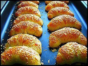 Τα βάζουμε σε ταψί και τους δίνουμε σχήμα κρουασάν.