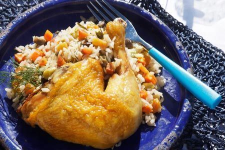 Κότα στη γάστρα γεμιστή με καλοκαιρινό ριζότο