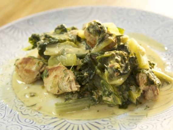 ΥΛΙΚΑ: 2 κιλά σέλινο και σέλερι αν θέλετε. 1 ματσάκι άνηθο 1 κιλό χοιρινό αλατοπίπερο ελαιόλαδο 2 αυγά 1 λεμόνι κρασί λευκό ξηρό