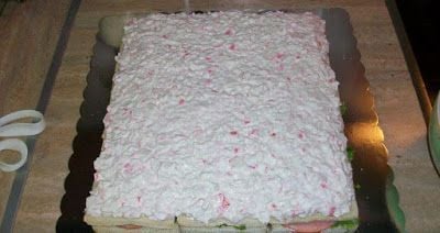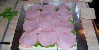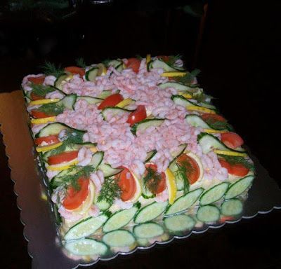 Υλικά ψωμί φέτες του τοστ χωρίς κόρα γαριδούλες μικρές καθαρισμένες [αυτές τις κατεψυγμένες στο σακουλάκι ] αγγούρι μαγιονέζα αυγά μαρούλι σαλάτα το λεγόμενο λίγο βιτάμ καπνιστή μπριζόλα σε φέτες ντομάτα λεμόνι άνηθο σουριμί απομίμηση καβουριού γιαούρτι στραγγιστό την ποσότητα στα υλικά υπολογίστε την ανάλογα με το μέγεθος που θα ετοιμάσετε Στρώνουμε τις φέτες για τοστ (χωρίς κόρα) δίπλα δίπλα και τις αλείφουμε με Βιτάμ..
