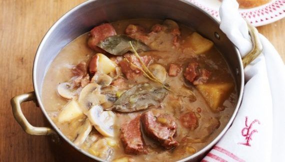 1.) Μοσχάρι με πατάτες και μανιτάρια, βρασμένο σε μπύρα