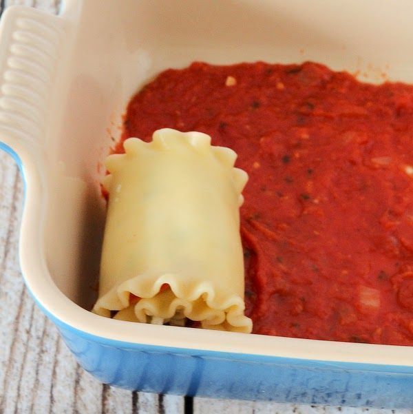 ρίχνετε την μισή και από επάνω τυλίγεται σε ρολά τα γεμιστά λαζάνια σας και τα τοποθετείτε το ένα δίπλα στο άλλο.