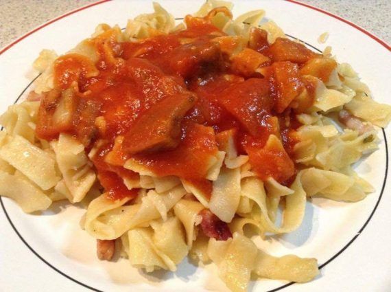 Χυλοπίτες με χοιρινή παντσετα και μελιτζάνα! Βράζουμε τις χυλοπίτες σε αλατισμενο νερό για 8 λεπτά και τις σουρωνουμε. Βάζουμε στην κατσαρόλα ένα κομμάτι βούτυρο σωταρουμε την παντσετα προσθέτουμε τις χυλοπίτες και ανακατεύουμε να πάει παντού. Ετοιμάζουμε τη σαλτσα: κόβουμε μισή μελιτζάνα φλασκα την καθαρίζουμε από την φλούδα της και την τηγανιζουμε ελαφρά. Σε ένα κατσαρολακι βάζουμε ένα κουτί συμπυκνωμένο χυμό ντομάτας λίγο νερό ένα κομμάτι βούτυρο την μελιτζάνα κομμένη σε κυβακια αλάτι πιπέρι πάπρικα γλυκιά και βράζουμε τη σάλτσα μας μέχρι να χυλωσει. Σερβίρουμε τις χυλοπίτες με τη σάλτσα και με τριμμένο τυρί ρεγκατο!