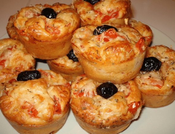 3. Ψήσε για περίπου 18 λεπτά, μέχρι να χρυσίσουν τα muffins και τσέκαρε αν έχουν ψηθεί με ένα μαχαίρι. Αν βγαίνει καθαρό είναι έτοιμα. Λίγο πριν τα σερβίρεις γαρνίρισε τα με τυρί και πέντε φέτες μίνι πεπερόνι και ψήσ’ τα για 4-5 λεπτά μέχρι να λιώσει το τυρί. Είναι έτοιμα για σερβίρισμα!