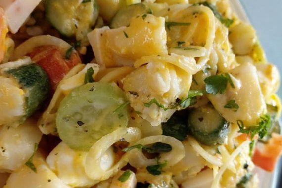 Δροσιστική καλοκαιρινή πατατοσαλάτα με κολοκυθάκια, αυγά & λαχανικά