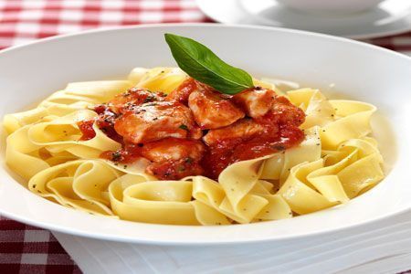 Κοκκινιστό κοτόπουλο της στιγμής με μακαρόνια